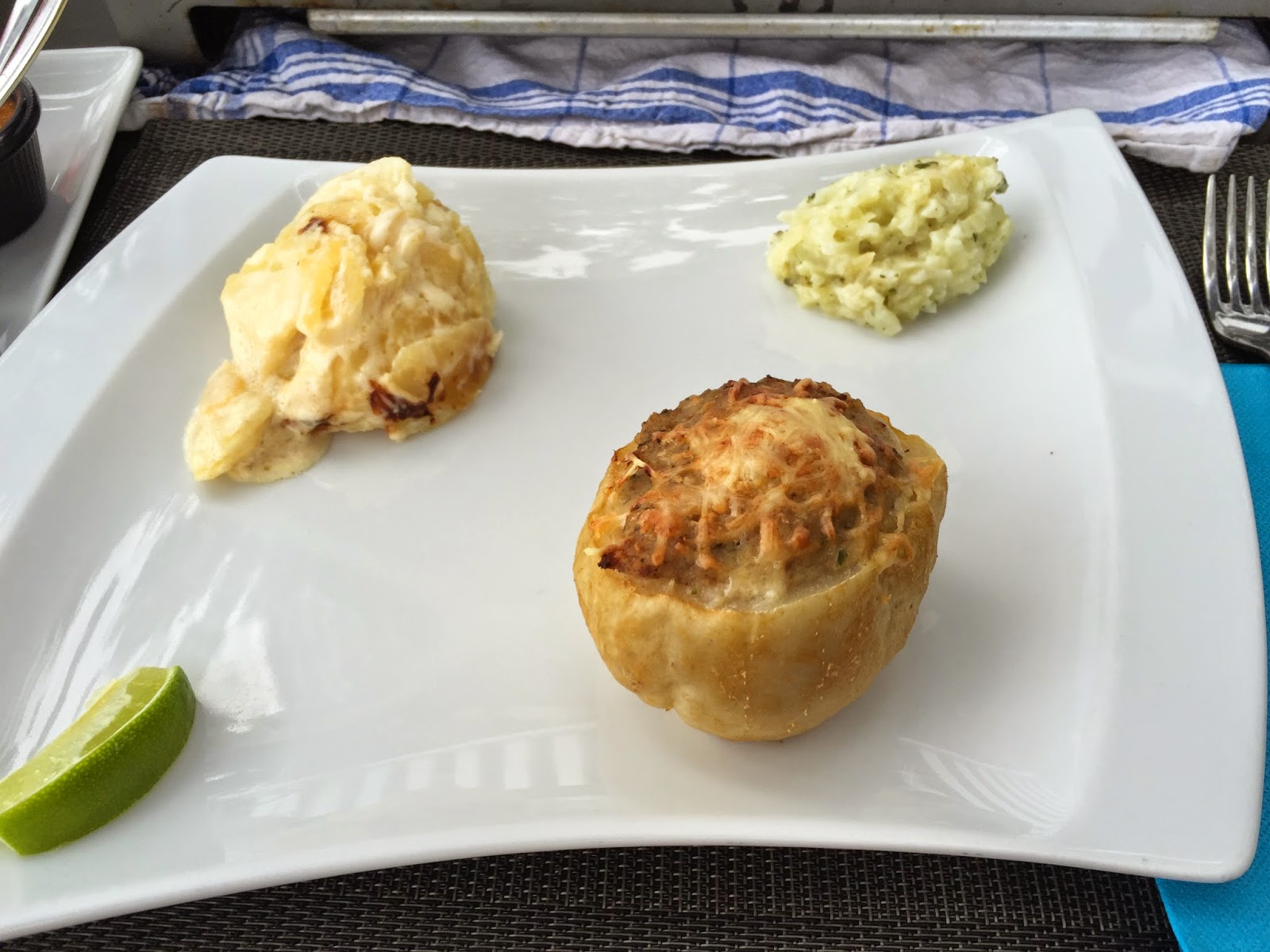 Un petit resto le midi, on se fait plaisir c’est notre dernier jour ! Et on a envie de manger du poisson, car contrairement aux apparences, on ne trouve pas beaucoup de poisson frais ! Du coup, on s’est pris une pierrade de poisson pour nous deux avec son accompagnement et ses sauces.