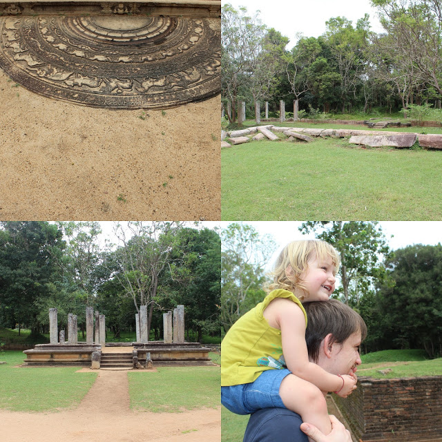 Nous avons ensuite fait un court arrêt dans un musée, puis sur les ruines du Temple Mahasena dont il ne reste que quelques colonnes et surtout la pierre de lune qui est encore très belle.