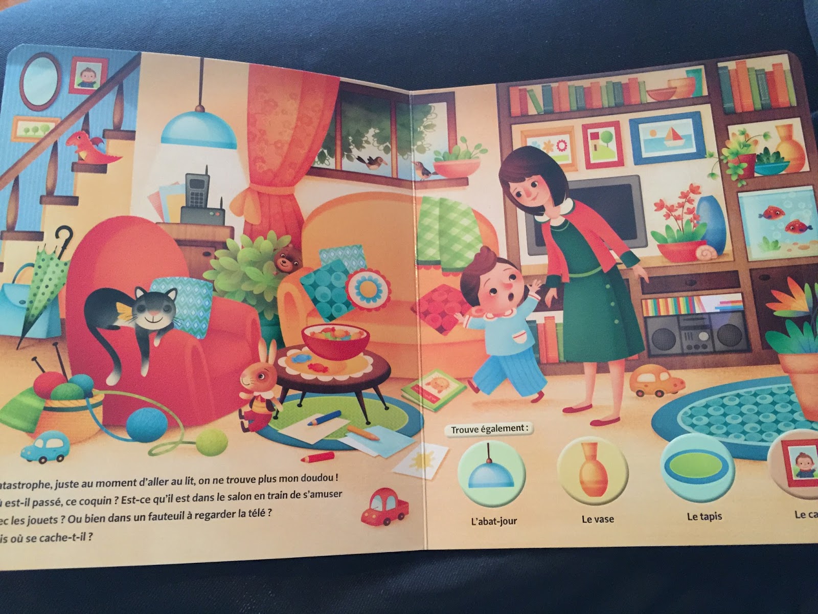 Pour celui-ci, l’histoire est celle d’un petit garçon qui à perdu son doudou (le titre est bien non ?) et qui le cherche donc à travers les pièces de sa maison.