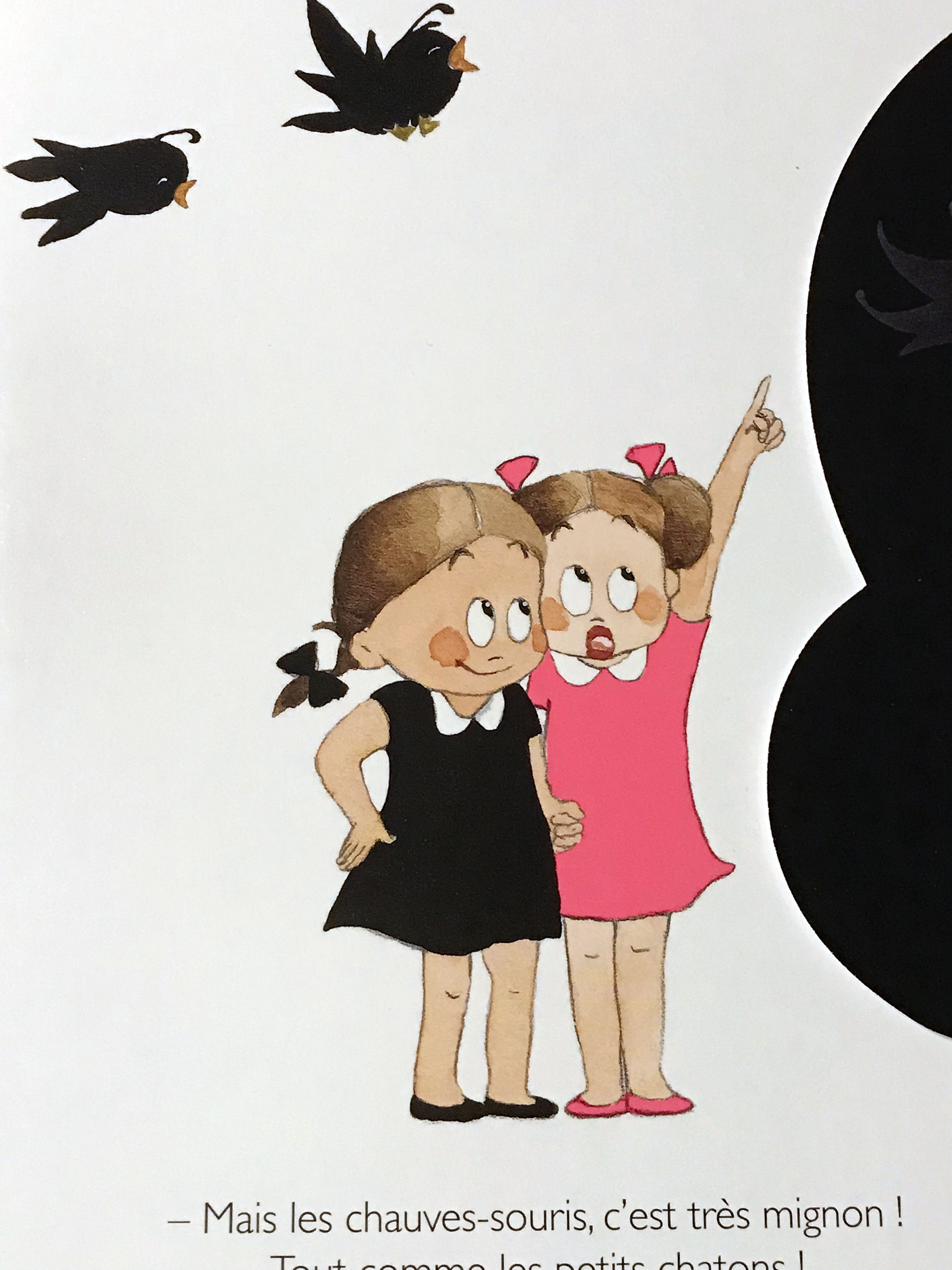 J’ai trouvé cette histoire très drôle. De réduire le noir à une simple couleur, de montrer qu’on pourrait très bien avoir peur du rose, du jaune, du vert, c’est très sympathique et ça dédramatise la peur du noir.