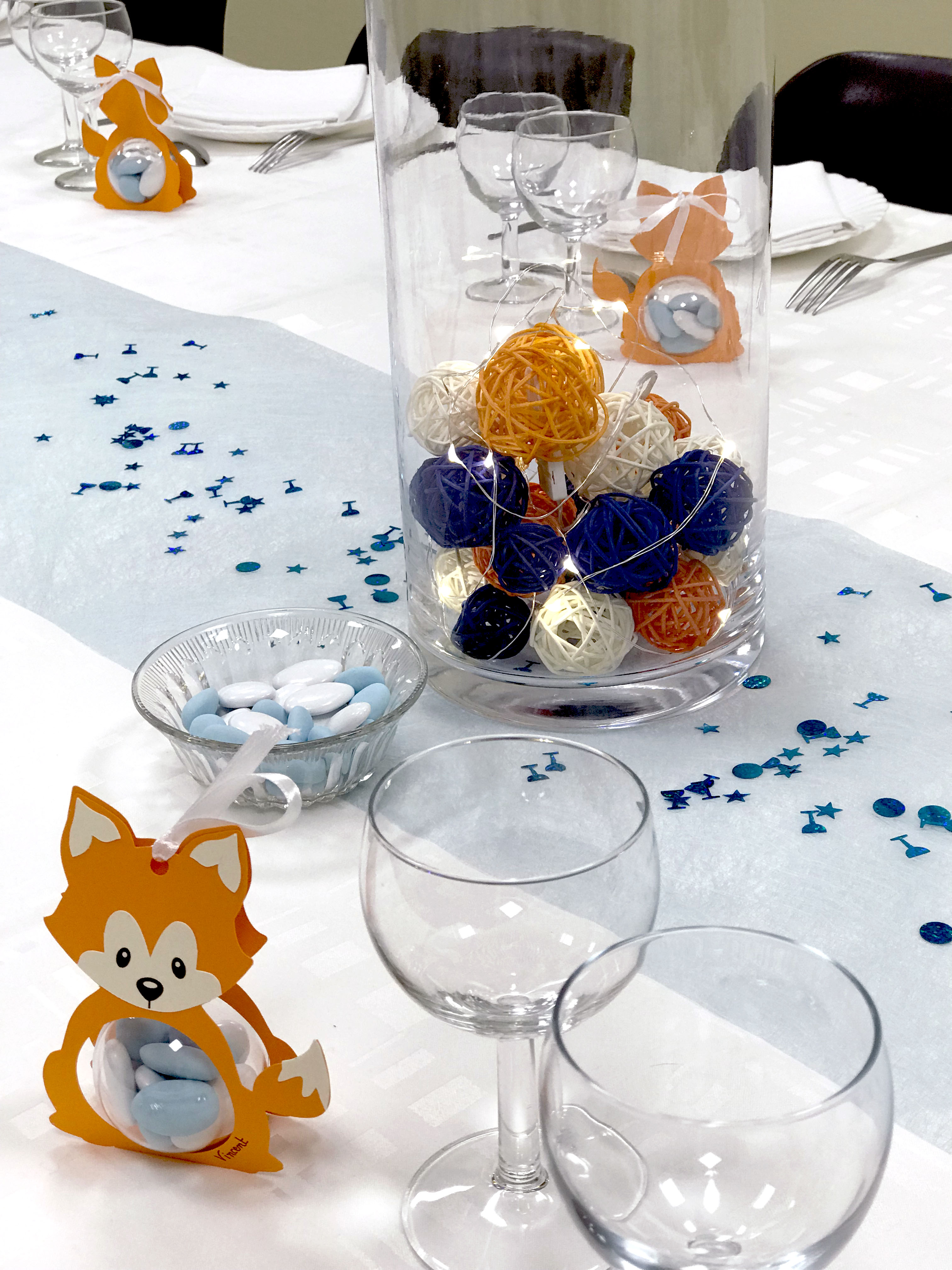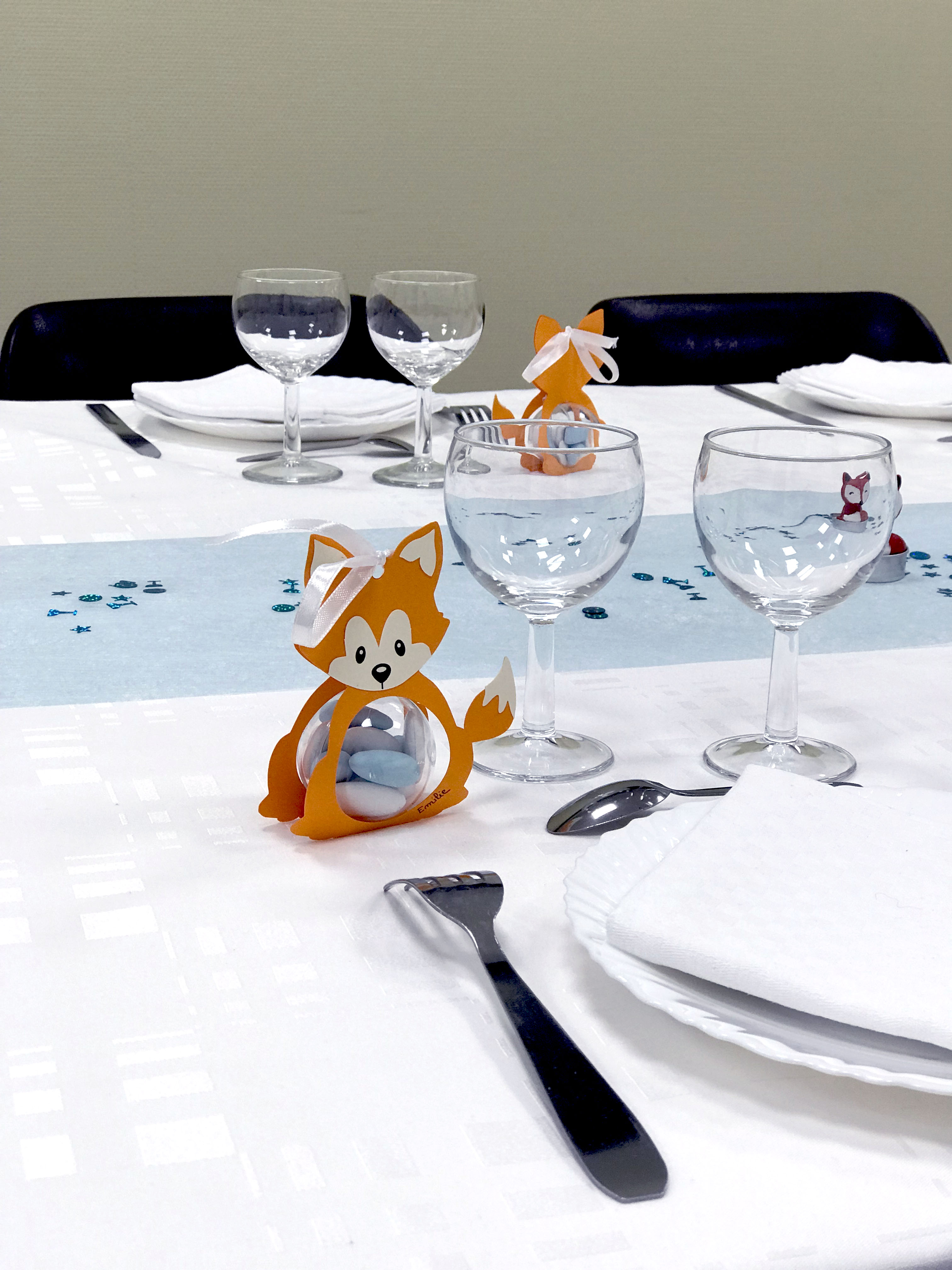 Pour ce qui est des contenants à dragées en forme de renard, je les ai acheté à une créatrice sur Etsy