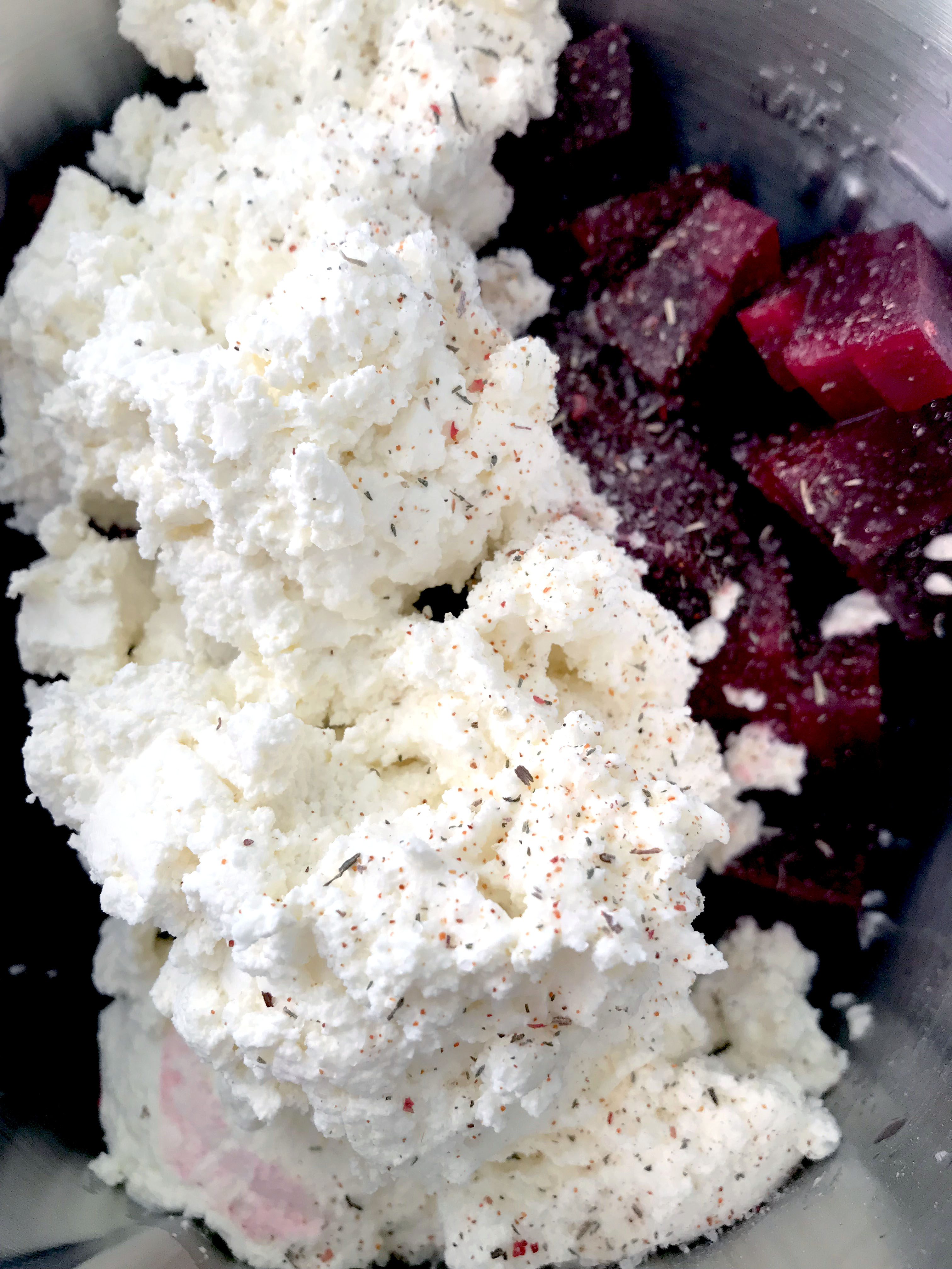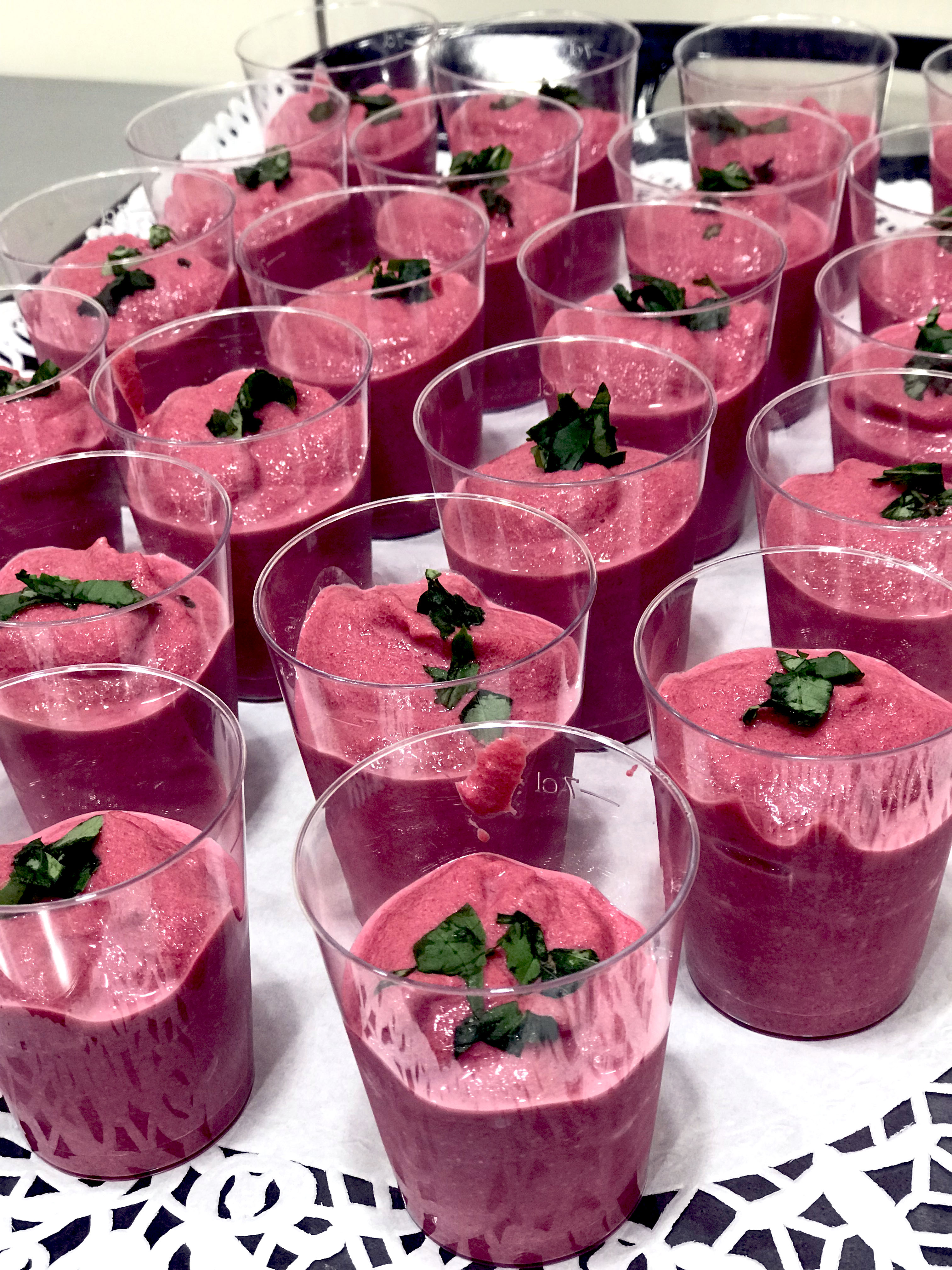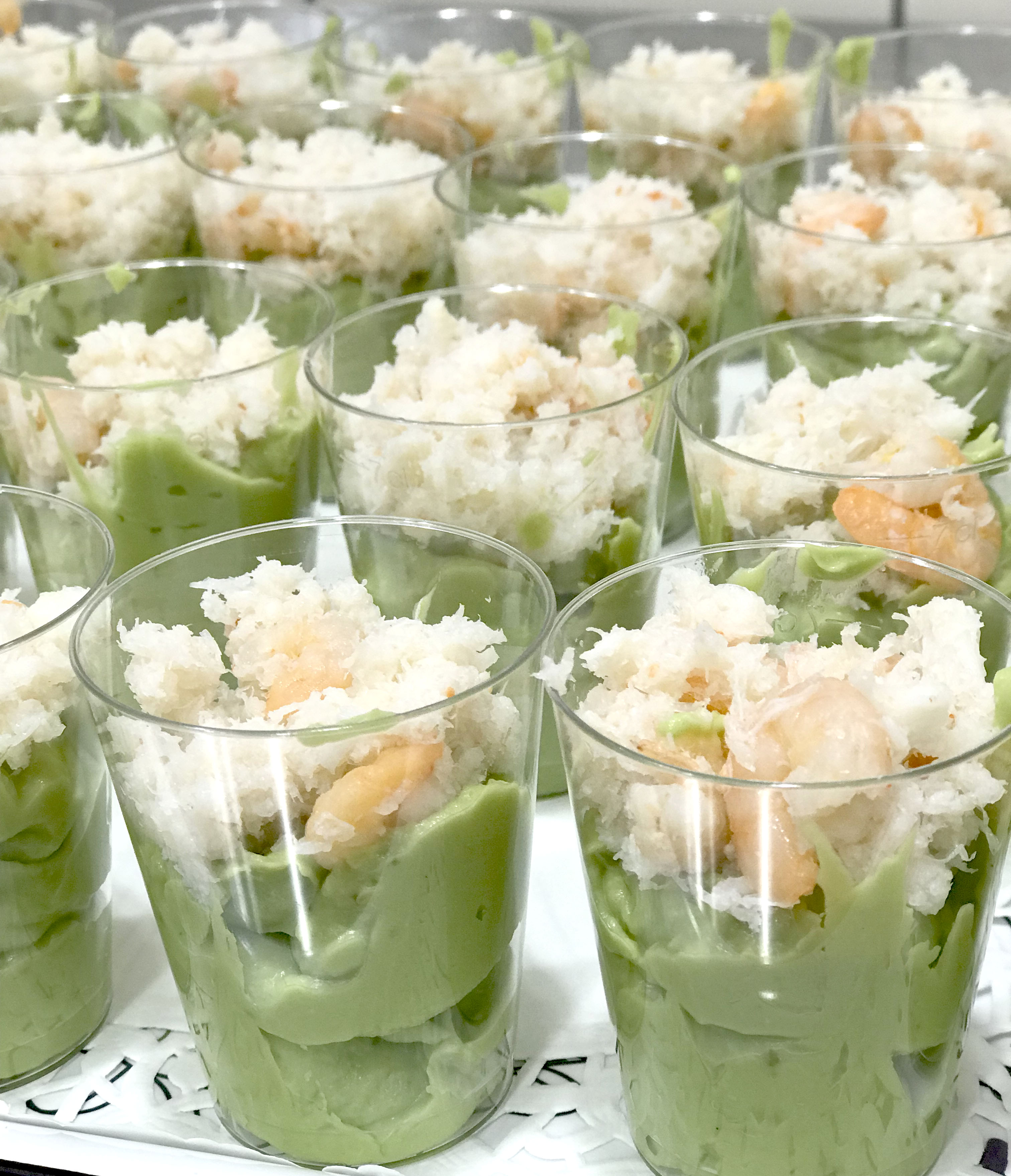 J’ai fait deux sortes de verrines : Betteraves / Fromage frais et Avocat / Crabe